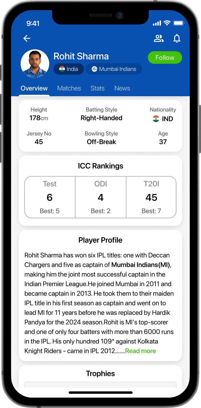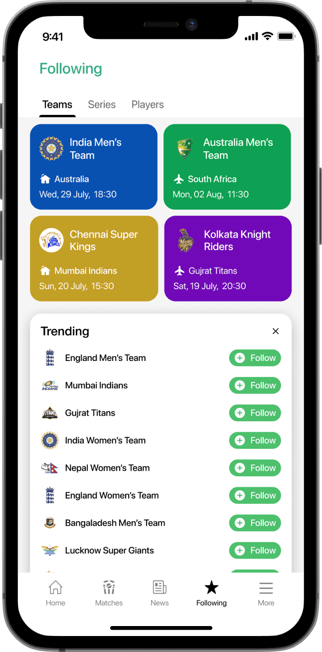 In the redesigned Cricbuzz experience, I wanted the very first interaction to give users a sense of control over their preferences and priorities. The onboarding flow focuses on letting users choose their favorite teams and players right from the start.